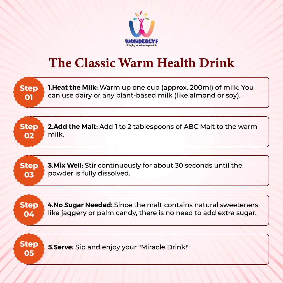 2. Add the Malt: Add 1 to 2 tablespoons of ABC Malt to the warm milk.