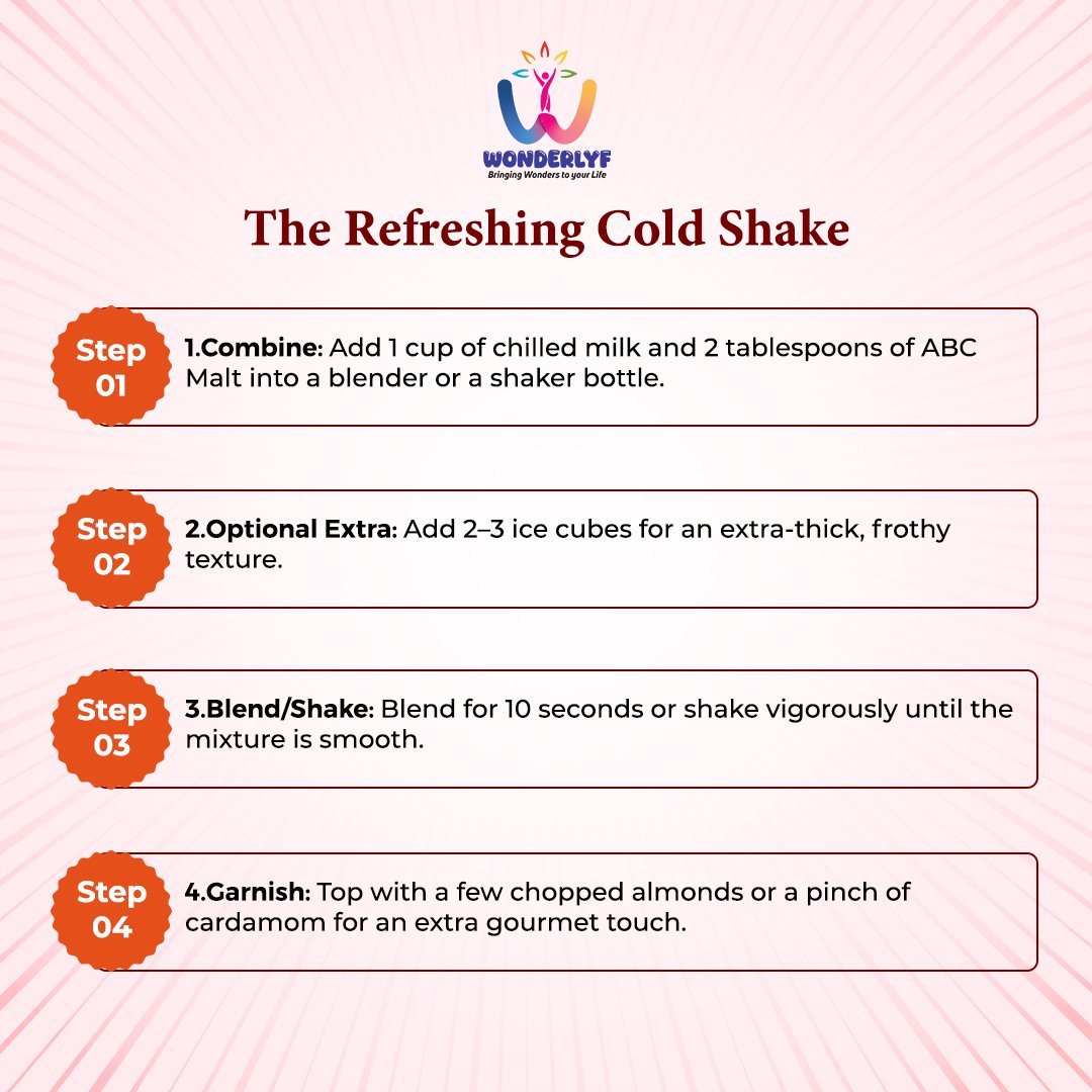 1. Combine: Add 1 cup of chilled milk and 2 tablespoons of ABC Malt into a blender or a shaker bottle.