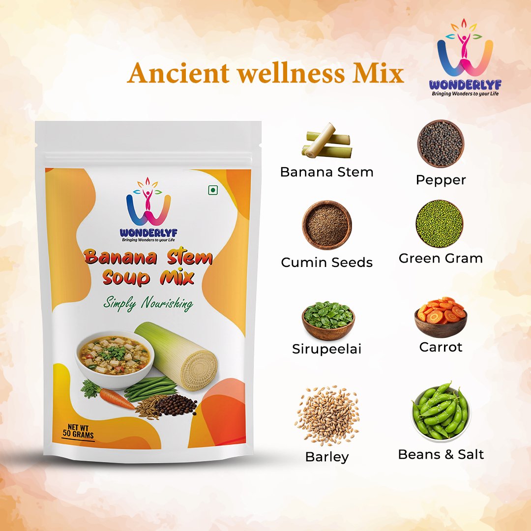 Discover the ancient wellness of our Instant Banana Stem Soup Mix. We blend fiber-rich banana stems with a signature mix of traditional spices (pepper, cumin, garlic, ginger) for a comforting, home style soup.